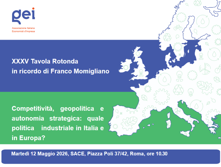 SAVE THE DATE 12 maggio p.v. a Roma presso SACE, XXXV Tavola Rotonda in ricordo di Franco Momigliano declinata al tema: "Competitività, geopolitica e autonomia strategica: quale politica industriale in Italia e in Europa?"